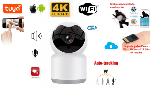Soporta memoria SD de hasta 128gb para grabación, también soporta la grabación en la nube (servicio pago directamente en la aplicación móvil).