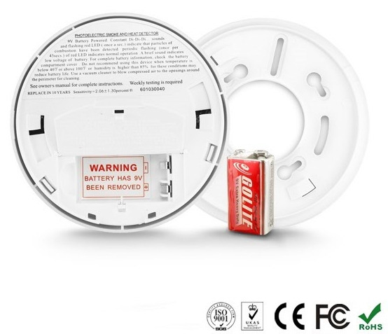 Poderoso sensor de humo y fuego inalámbrico, montado en cielo. Incorpora un elegante led rojo de funcionamiento, botón de revisión de estado y buzzer incorporado para aviso sonoro. Monitorea 24 horas.