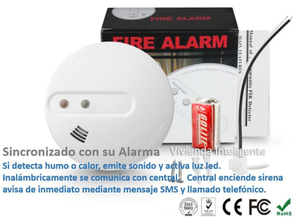 - central envía un mensaje de texto a todos los números configurados en la alarma (hasta 3) con el texto "Zona 05 alarma de Fuego"