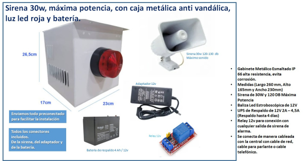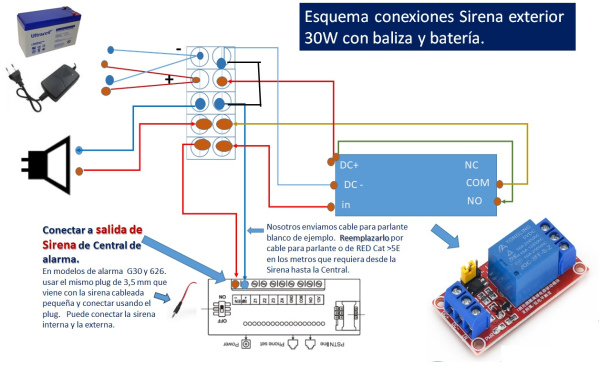 •Relay 12v para conexión con cualquier salida de sirena de alarma.